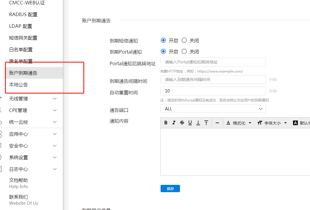 到期通告主要配置PPPoE 服务等,在用户账号过期/快过期的时候,告知客户