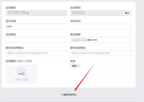 点击【添加开放平台】。
