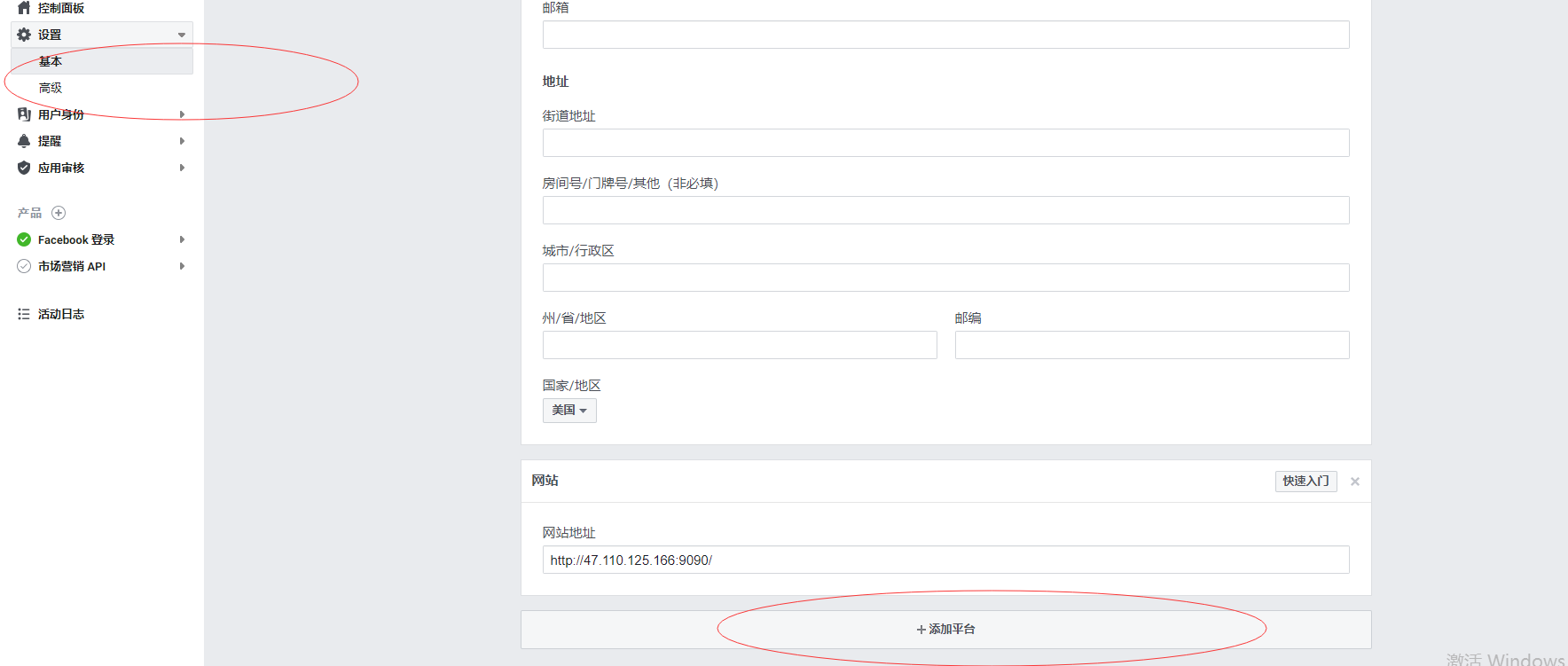 3、从Facebook 获取相关参数填到本地配置页面
