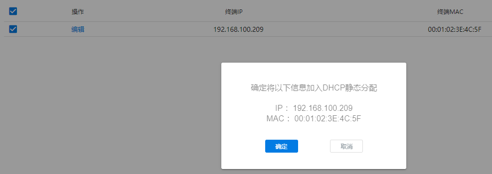 对选中的MAC分配固定的IP地址