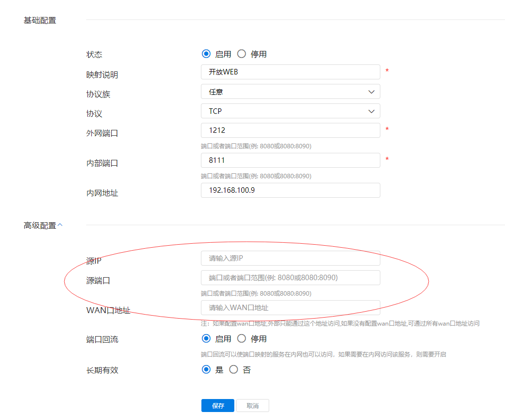如果在高级配置中输入了源IP等信息,就会对访问做输入性限制。