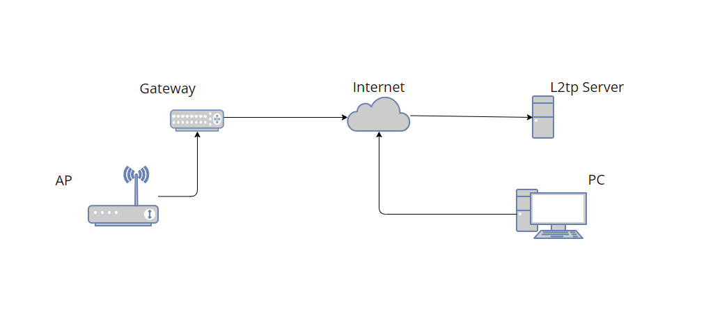 网络中部署一台L2TP服务器,PC通过拨号连接, 无线终端通过连接AP后再拨号连接。