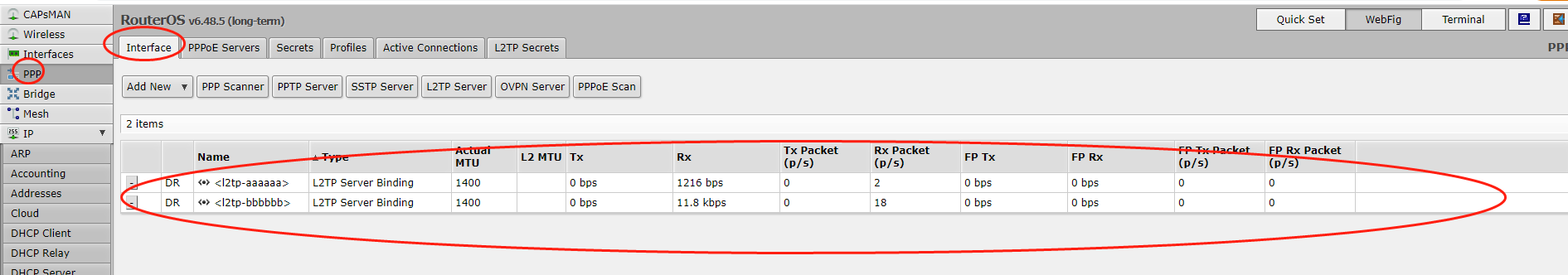在列表中,可以查看到已经拨号成功的两个客户端在线。