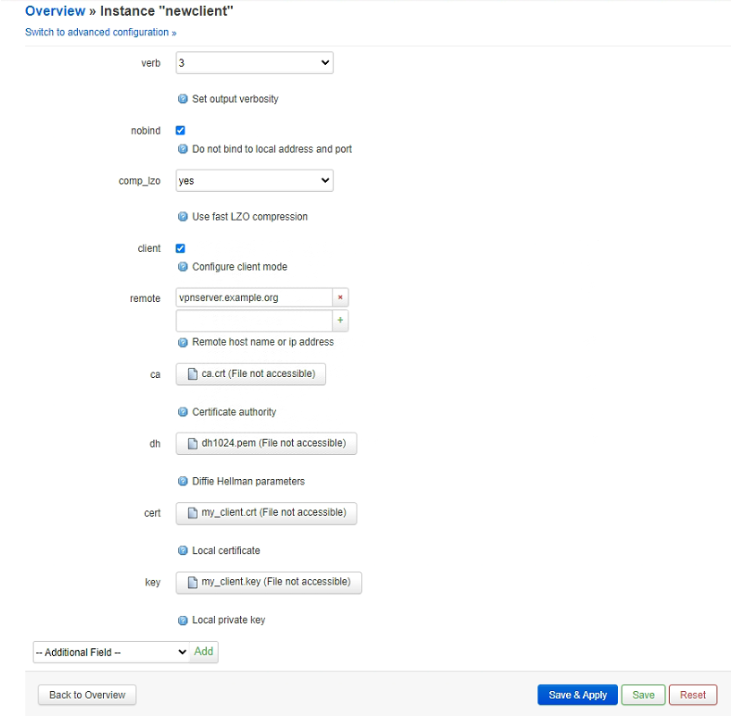 in:后面跟client证书的名称, 在上面创建的证书的key为ovpn.key