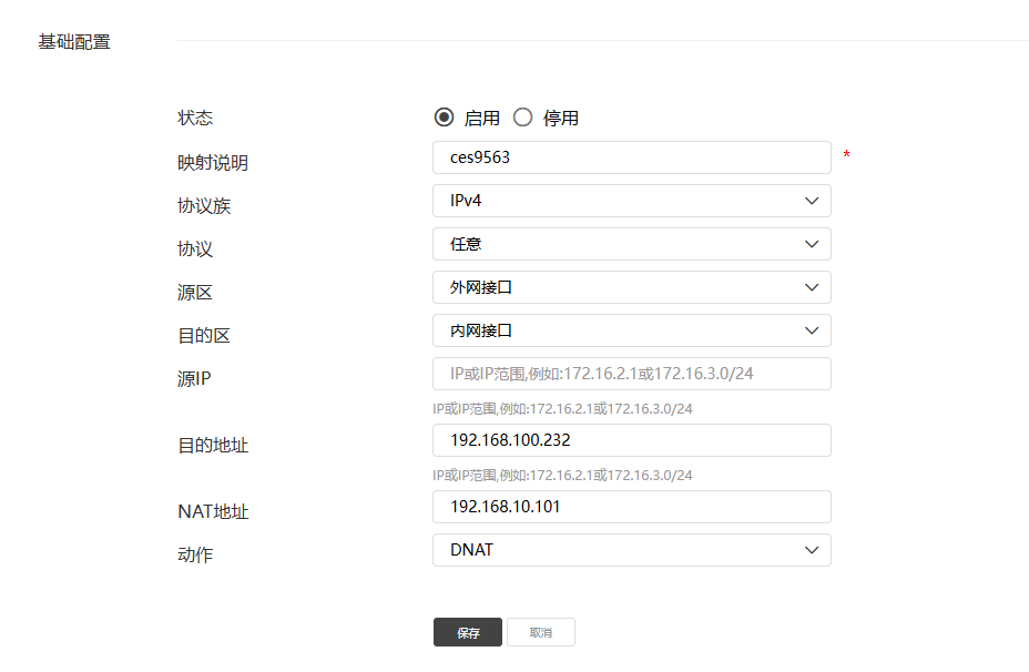 目的地址为新增的智能多线的地址,NAT地址为目的内网地址,动作选择DNAT