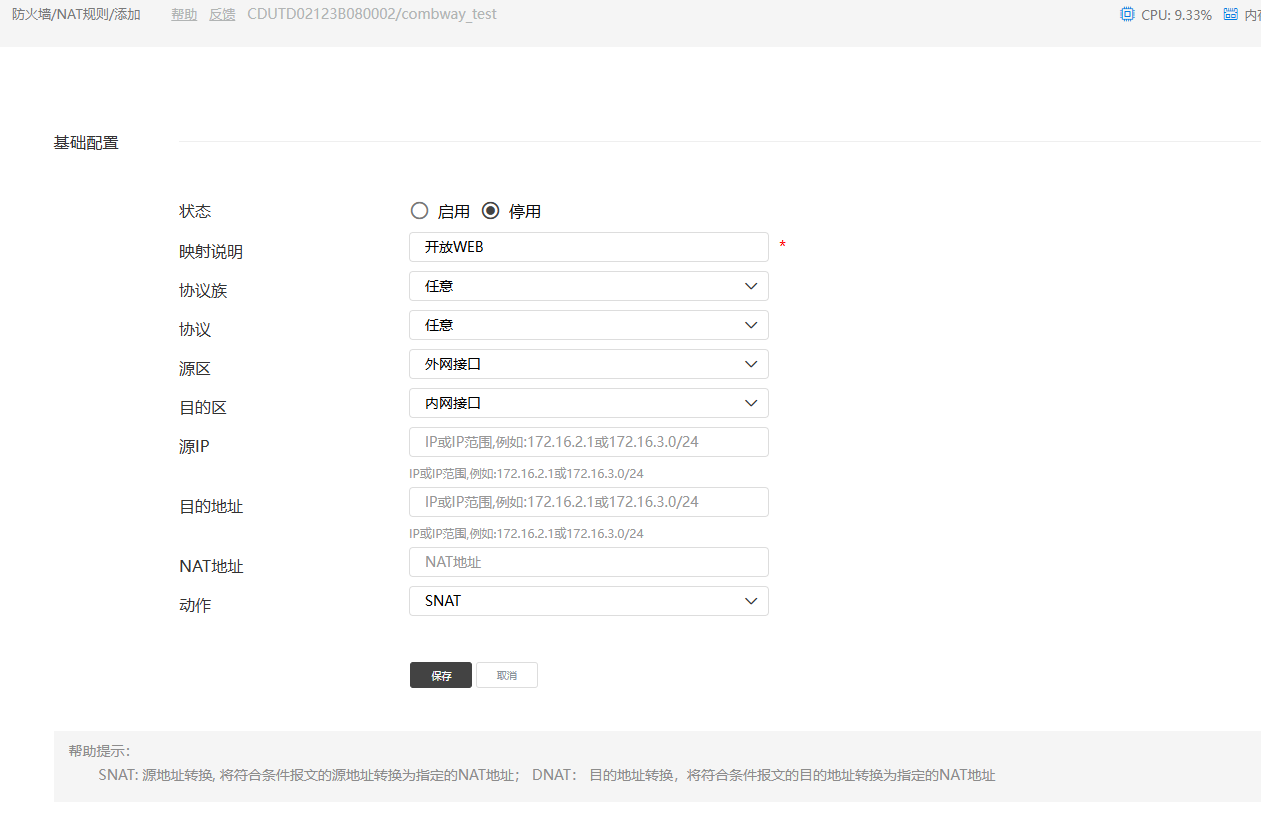 新建一个智能多线,如下图所示,从系统概况中查看到多线接口的IP地址, 然后再新建NAT规则