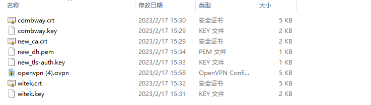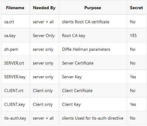 到这里就完成了CA证书,服务器和客户端证书的生成和密钥。这些密钥将用于OpenVPN服务器和客户端之间的身份验证。