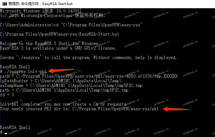 EasyRSA-Start.bat。输入EasyRSA-Start.bat回车后,我们会进入到easy-rsa3的shell会话