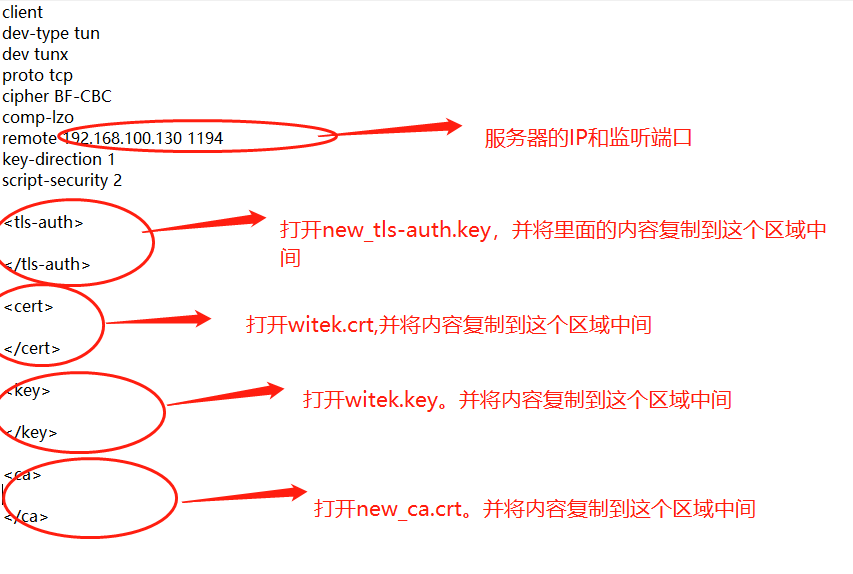 remote 192.168.100.130 1194: 定义服务器的公网IP 和 端口